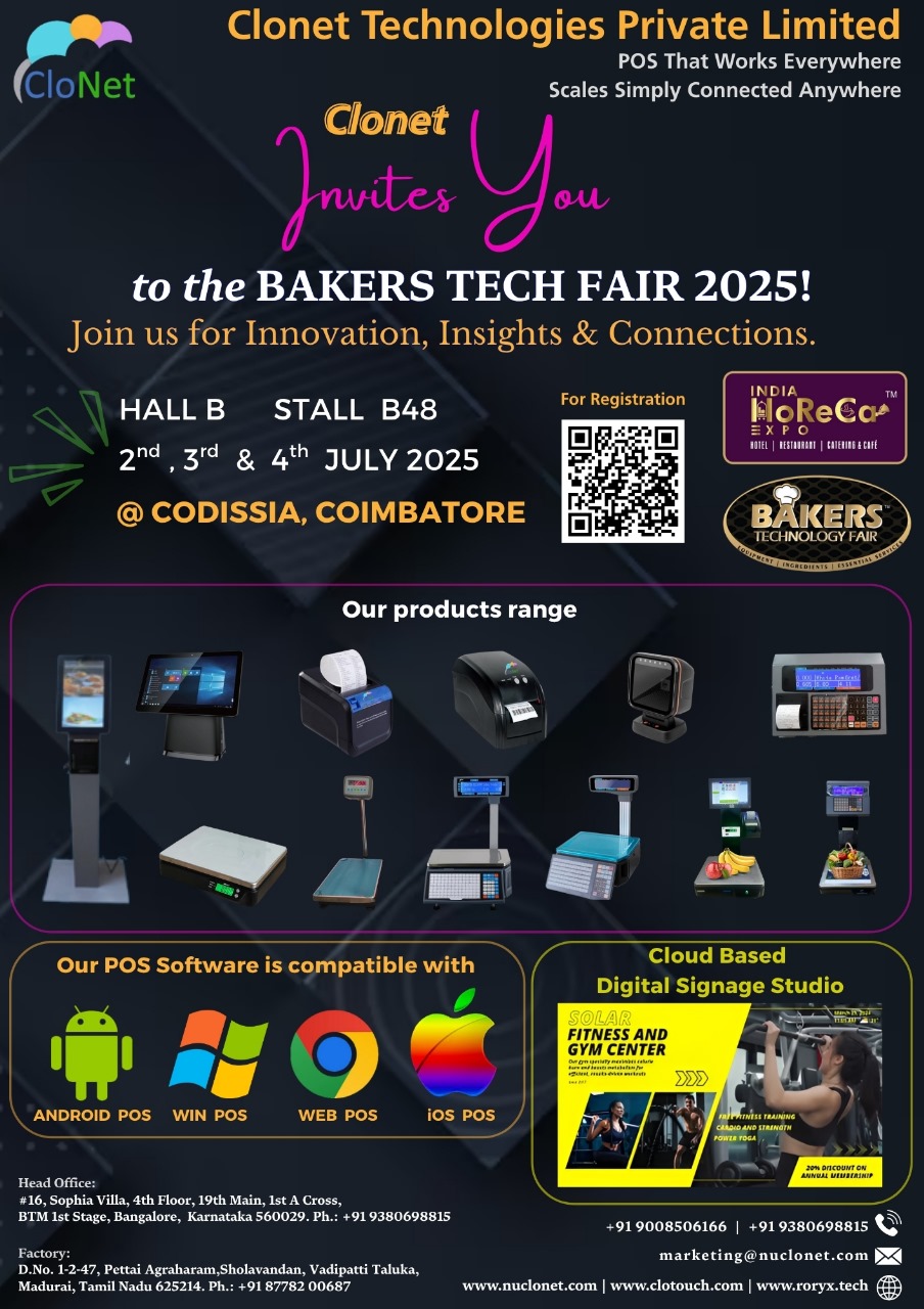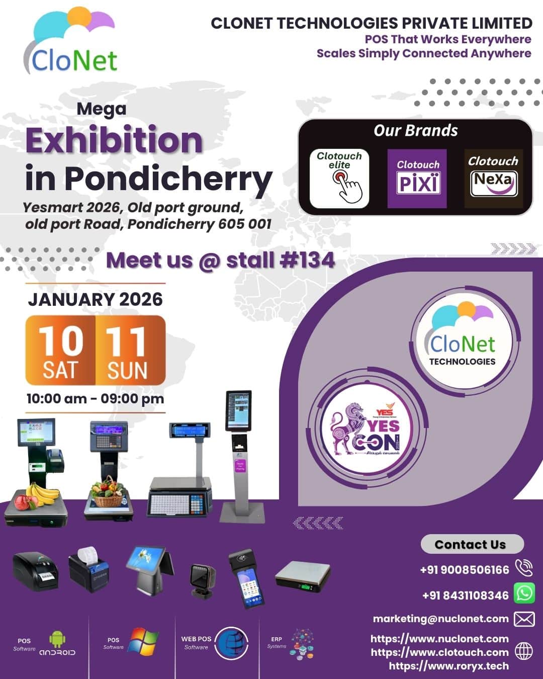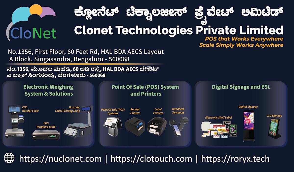 CLONET Technologies Private Limited is a high-tech enterprise that was started by professionals with over 30 years experience in the field, specializing in R&D, manufacturing and marketing of Electronic Weighing Scales and Systems, POS, Printers, Receipt Printers, Label Scales, Control Boards and other POS peripherals.